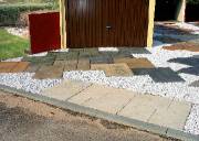 | Grundlage für das Prägebetonverfahren ist ein spezieller Beton nach DIN 1045, der in vorhandenen Formen (mind. 6 mm stark) fachgerecht gegossen wird. Das Einfärben der Frischbetonoberfläche erfolgt anschließend durch das Einstreuen, Verreiben und Glätten des perma-color Farbhärters. Das perma-color Entschalungspulver sorgt für die Fugenfarbe, hebt den dreidimensionalen Charakter der Steinstruktur hervor und ermöglicht das Prägen der Oberfläche mit Kunststoffschablonen. Nach dem Abwaschen schließt eine Acrylharzimprägnierung die Prägebetonoberfläche. |